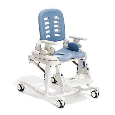 Durch eine hydraulische Höheneinstellung kann der Heron individuell angepasst werden. Dies ermöglicht u.a. einen einfachen Transfer des Nutzers und erleichtert auch die Pflege.